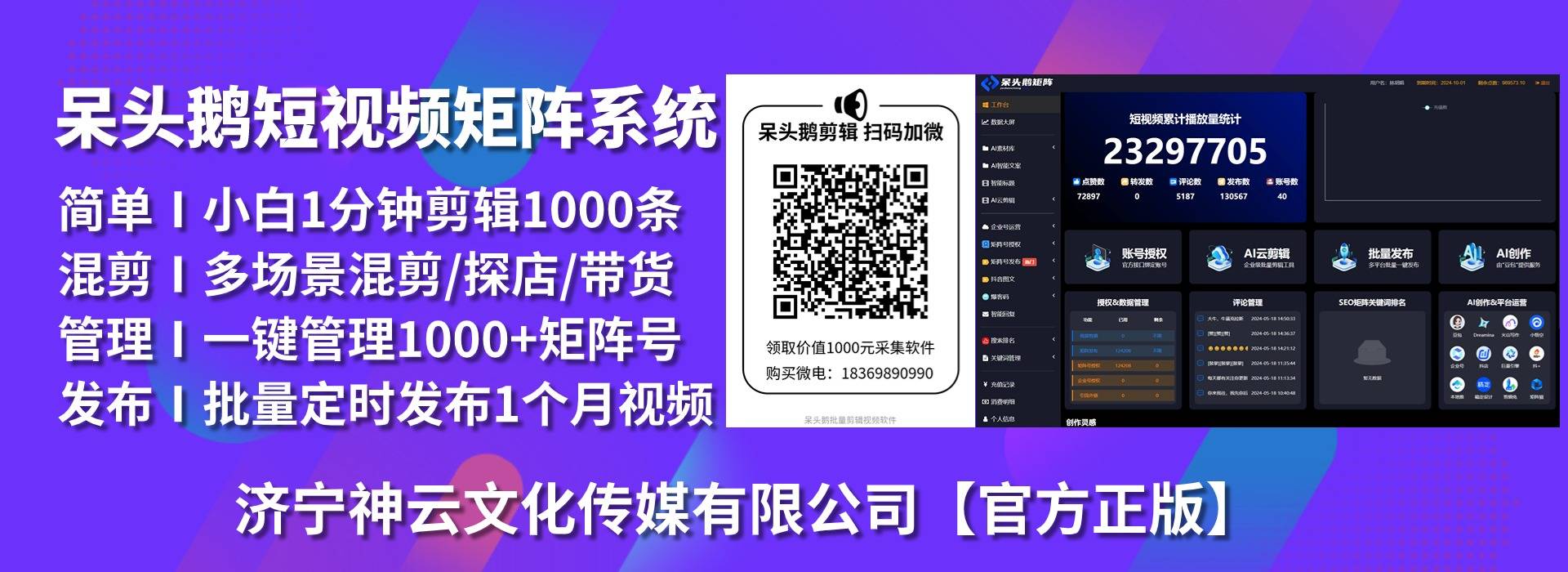 石屏呆头鹅短视频矩阵系统