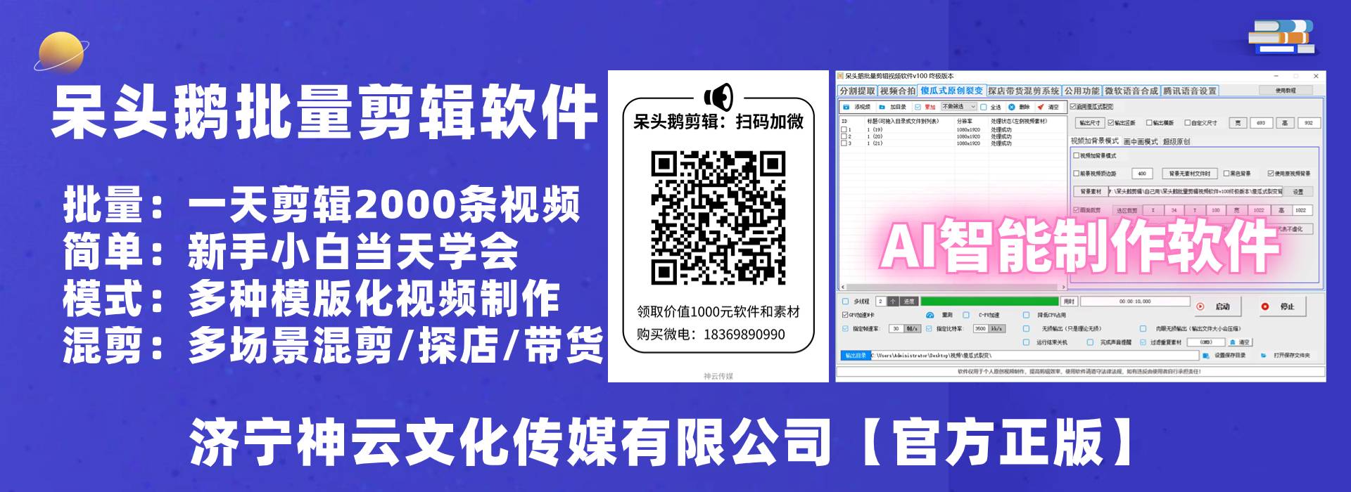 2.呆头鹅批量剪辑视频软件,呆头鹅聊天记录制作软件,呆头鹅图文批量制作软件,神云剪辑